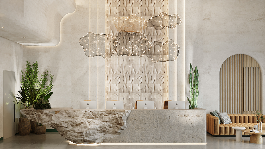 Kinesis Clinic, located in Emirates Hills, Dubai, embodies a minimalist design philosophy, focusing on simplicity and functionality. The clinic’s interior is free from unnecessary colours and clutter, creating a serene environment that promotes wellness and comfort.